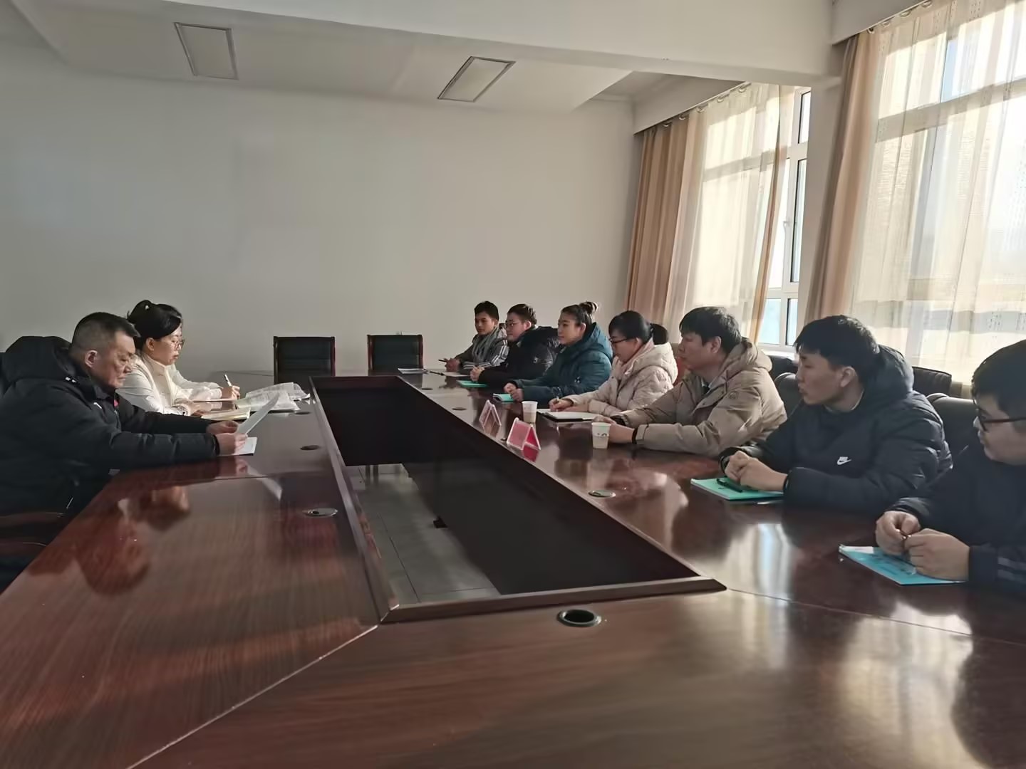 在南开路中学,敖日格乐及相关教师一行与南开路中学教导处主任张强反馈了实习员工的整体工作情况,南开路中学带教老师对实习员工积极主动的学习精神给予了肯定,同时也对他们的实习工作提出建议。敖日格乐表示,要与实习公司加强联系,共同合作,实现双赢。
