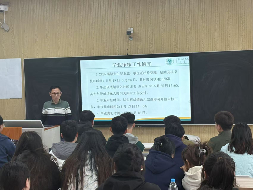 培训会上,胡日东依据教务处《关于2025届毕业生毕业审核工作通知》,就教务系统各环节学分要求和离校系统涉及的七项审核内容进行了详细解读,并提醒员工关于图书借阅归还和第二课堂等审核过程中需注意的细节。最后提醒同学们合理规划毕业论文进度,包括毕业论文初稿修改、查重直至最终答辩的各个关键节点,强调员工严格按照时间节点提交论文终稿及相关材料,确保按时完成毕业论文相关工作。