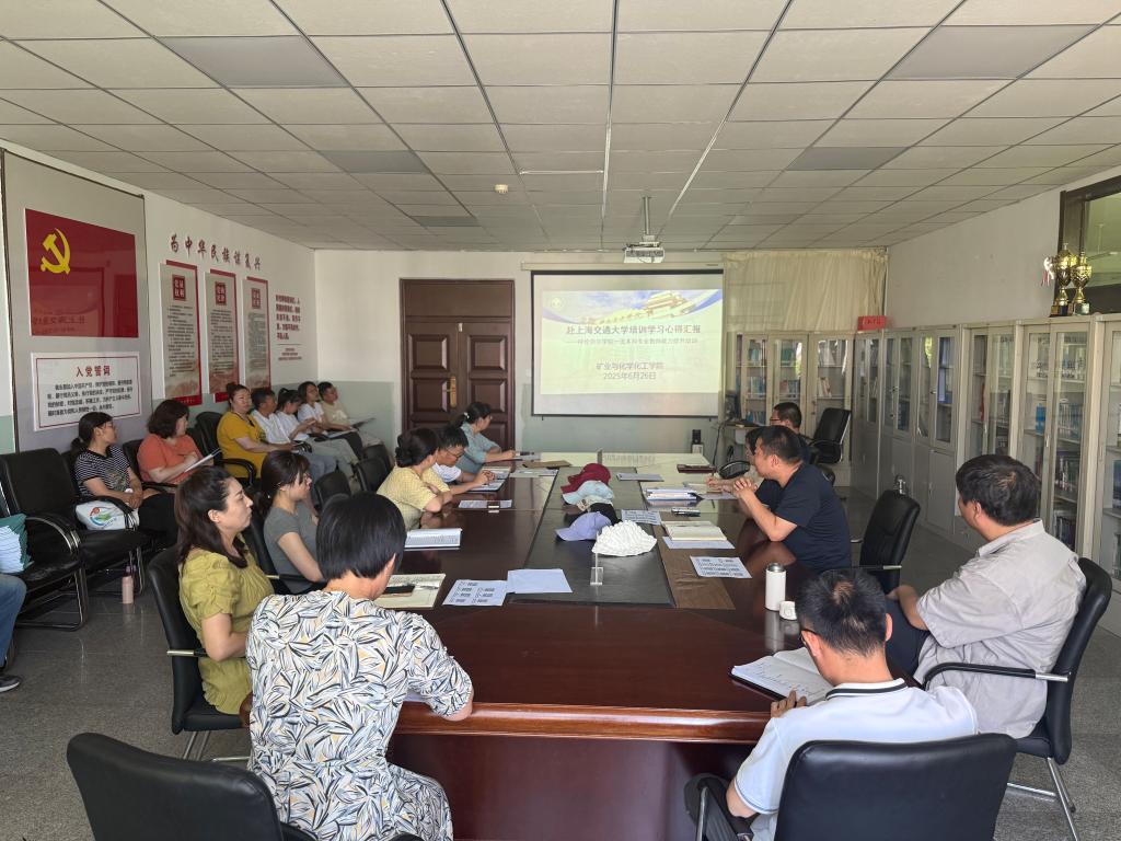 汇报聚焦培训核心内容,公司经理郭文彬与采矿工程系主任乔燕珍结合上海交通大学的学习见闻和矿化公司发展实际,分别就强化教师教学主体责任、动态优化专业布局、促进传统工科与新兴技术交叉融合、深化校企协同育人等多个关键领域,与全体教职工进行了深入交流研讨。