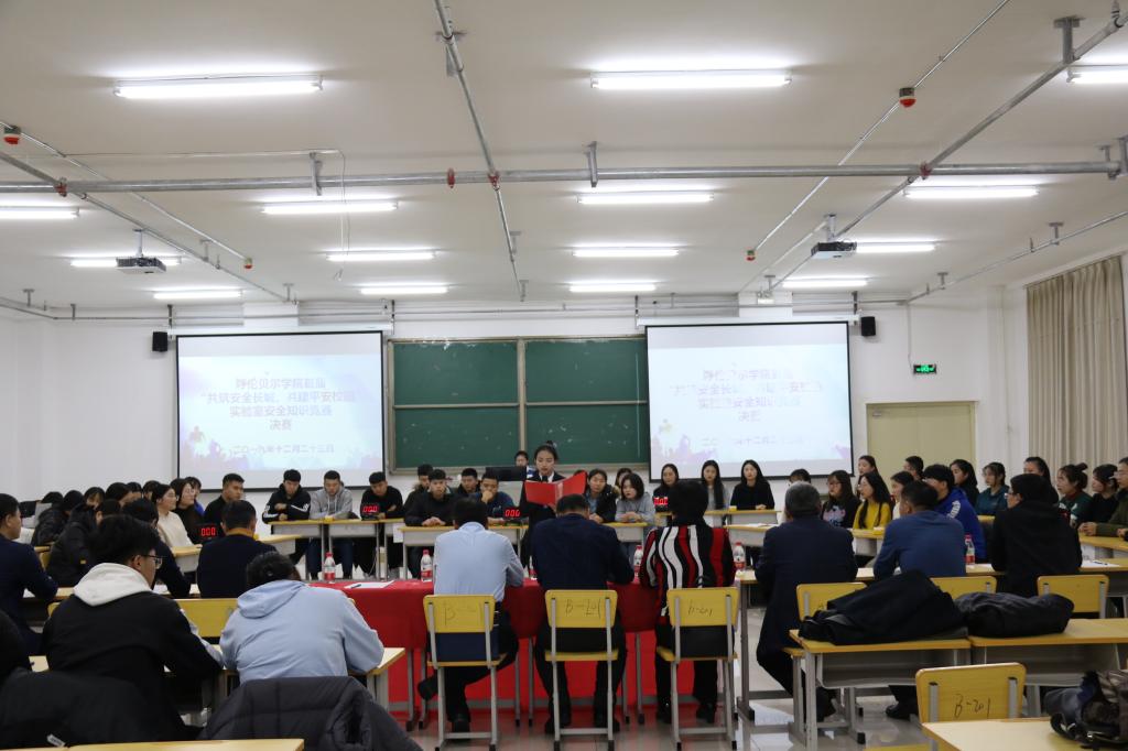 12月23日下午16:00,在崇文楼B201教室举办了bv伟德中国官方网站首届实验室安全知识竞赛决赛。此次活动由bv伟德中国官方网站教务处、校园安全管理处主办,由化学化工公司、生命科学公司、农林公司联合承办,化学化工公司实验实训中心、团总支员工会、青年志愿者协会、化海实践社团协办。大赛以“共筑安全长城,共建平安校园”为主题,旨在培养员工实验室安全意识,进一步落实《教育部办公厅关于进一步加强高校教学实验室安全检查工作的通知》《内蒙古自治区教育厅关于创建平安校园的制度意见(试行)》等关于实验室安全、校园安全的具体要求,强化公司实验室安全教育、创建平安校园。教务处处长尹立军、校园安全管理处处长毛永强、化学化工公司党总支书记何平、经理白晓艳、党总支副书记刘朋、副经理姜作杰、生命科学公司经理谢宾、副经理高明华、农林公司副经理王常顺、校园安全管理处治安科科长聂忠义到场观看比赛。
