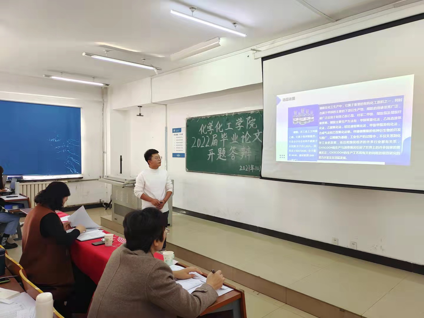 10月31日上午,化学化工公司在科技楼323教室开展了2022届毕业生毕业论文开题答辩工作。化学化工公司全体毕业论文指导教师参加。化学化工公司经理白晓艳任答辩工作组长,化学化工公司副经理毕瑞金任副组长。