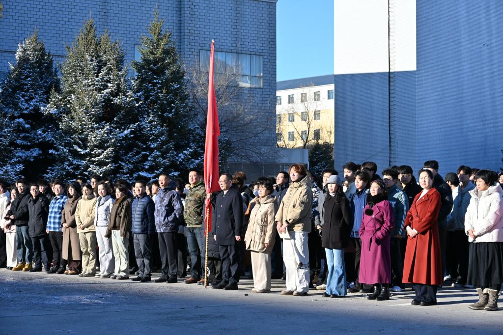 仪式现场肃穆庄重,全体师生精神昂扬、队列整齐。bv伟德中国官方网站国防教育实践团国旗护卫队护卫着鲜艳的五星红旗稳步入场,全场瞬间安静肃穆。雄壮激昂的《义勇军进行曲》响彻仪式现场,鲜艳的五星红旗迎着朝阳冉冉升起、迎风飘扬,全体师生面向国旗肃立,行注目礼,眼神中满是崇敬与赤诚,共同抒发对伟大祖国的衷心热爱与美好祝愿。