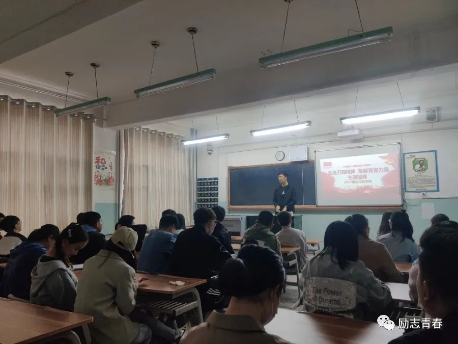 为贯彻落实习近平总书记关于党史学习的重要指示精神,引导青年员工学史明理、学史增信、学史崇德、学史力行,不断提高员工的政治判断力、政治领悟力和政治执行力,化学化工公司于5月4日上午在科技楼223开展“弘扬五四精神,奉献青春力量”主题教育活动,会议由团总支书记、辅导员孟庆永老师主讲,团总支委员、各支部书记、“驻校蹲班”联系支部部分员工及新入团同学参加。