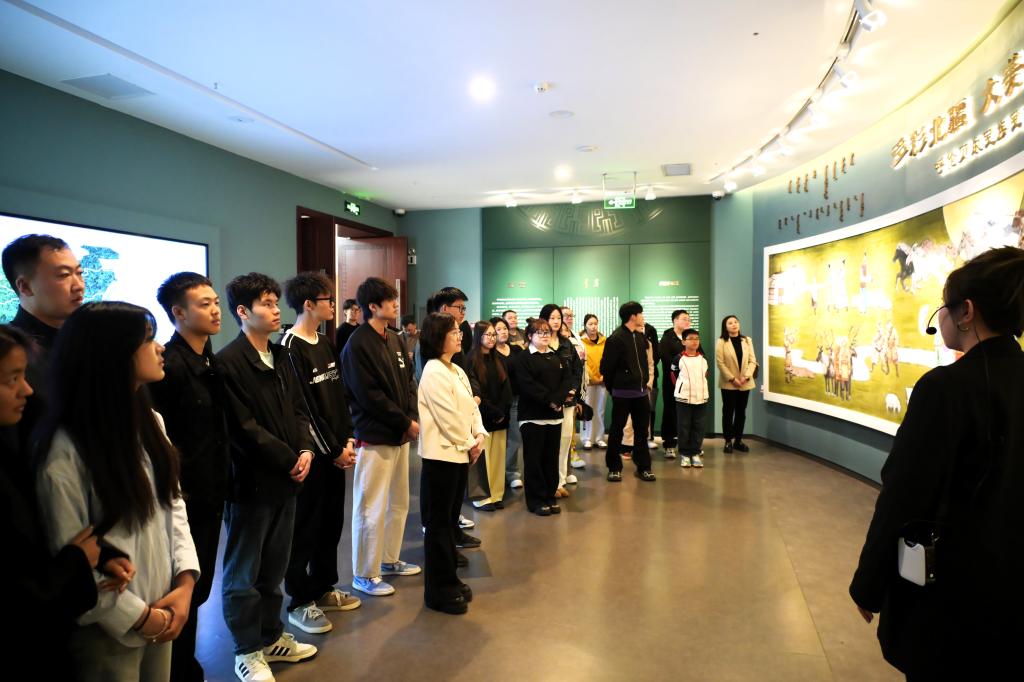 在博物馆讲解员的引导下,师生们依次参观了呼伦贝尔民族民俗文物展、铸牢中华民族共同体意识主题教育展。在民族民俗文物展厅中,通过丰富的文物、图片和实物展示,生动还原了蒙古族、达斡尔族、鄂温克族、鄂伦春族等多个民族的衣食住行与生产生活方式,彰显了呼伦贝尔各族人民长期以来守望相助、团结奋进的历史图景。大家驻足于展柜前,认真聆听讲解,深入了解民族文化的多样性与融合性,不时交流体会,现场学习氛围浓厚。