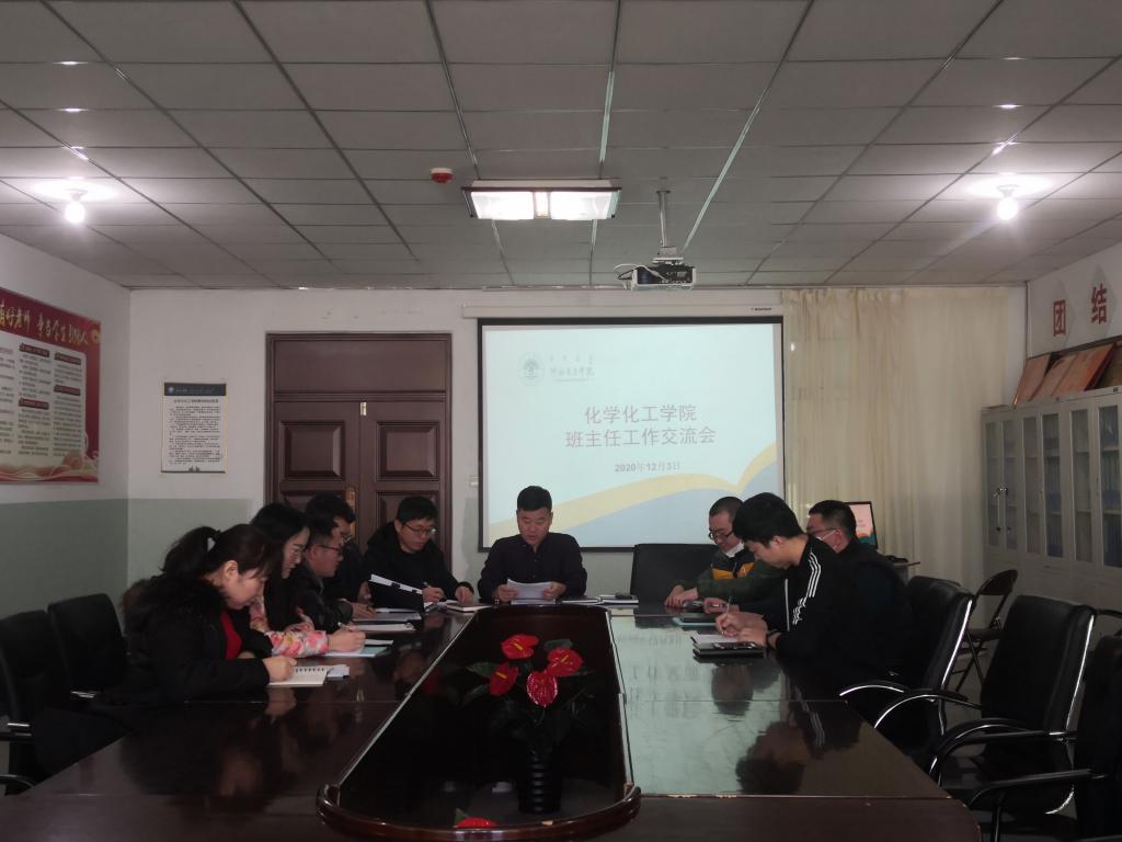 为进一步总结本学期员工工作,交流做法,总结经验,化学化工公司于12月3日在科技楼422会议室召开班主任工作会议,会议由党总支副书记刘朋主持,团学办公室主任张一帆、团总支书记孟庆永、各班级班主任参加会议。