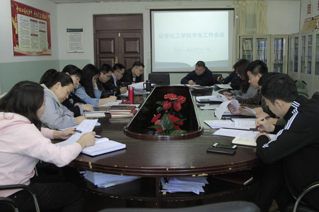 为进一步推进员工工作有效落实,切实提高员工工作水平,化学化工公司于3月31日下午在科技楼422会议室召开员工工作会议,党总支书记艾丽、党总支副书记刘朋、团学办公室主任张一帆、团总支书记孟庆永、各班级班主任参加了会议,会议由党总支副书记刘朋主持。