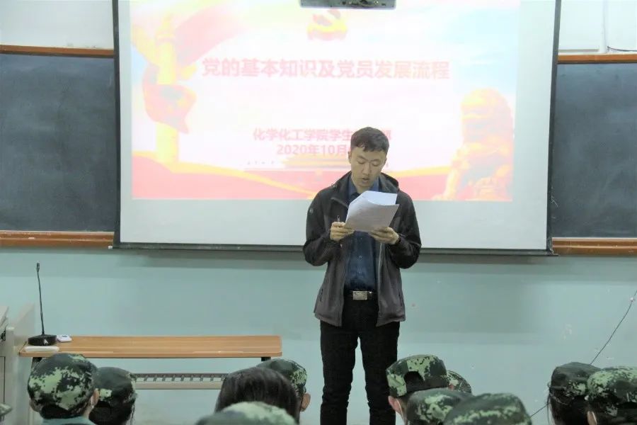 为进一步深入学习党务知识,积极团结广大团员青年紧密的围绕在党旗的周围,“听党话、跟党走”,使广大团员积极的、自觉的向党组织靠拢,切实增强“四个意识”、坚定“四个自信”、坚决做到“两个维护”,坚决做到“党旗所指、就是团旗所向”。积极推进公司党务和共青团工作的开展,使员工树立正确的入党动机,让员工更了解党的基本理论知识、更加清楚的了解入党流程及党员的义务和责任。化学化工公司于10月6日晚19时在工程楼100室开展了“党的基本知识及党员发展流程”讲座,此次讲座由团总支书记、员工党支部书记孟庆永老师主讲,2020级全体员工参加。