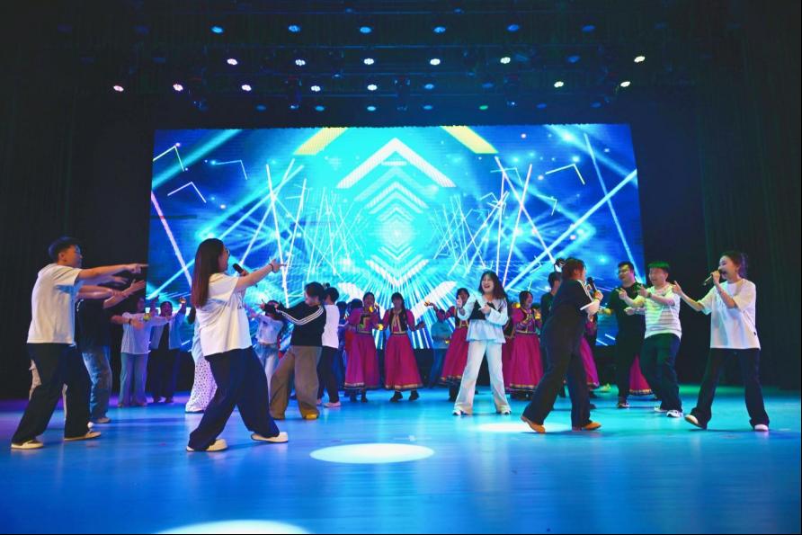 在晚会的第三篇章,张淳泊同学带来歌曲《最后一页》,饱含深情的歌声为大学时光画上了圆满的句号,也预示着人生新的篇章即将开启。最令人惊喜的是,公司教师杨云晖与刘欣荻、孟凡明等同学共同带来歌舞秀《送你一朵小红花 + 你要跳舞吗》,欢快的歌舞中满是对毕业生的祝福与期望。