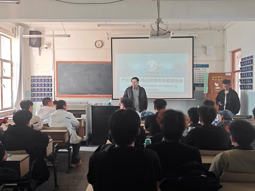 为确保2024级采矿工程(校企合作)专业订单班产业拓展训练安全有序开展,深化产教融合育人成效,9月9日,bv伟德在工程楼404教室召开产业拓展训练动员会暨安全教育班会。公司党委副书记敖岩辉,跟训教师褚建伟、韩旭,辅导员庞明慧及2024级采矿工程(校企合作)专业订单班全体30名员工参会,会议由辅导员庞明慧主持。